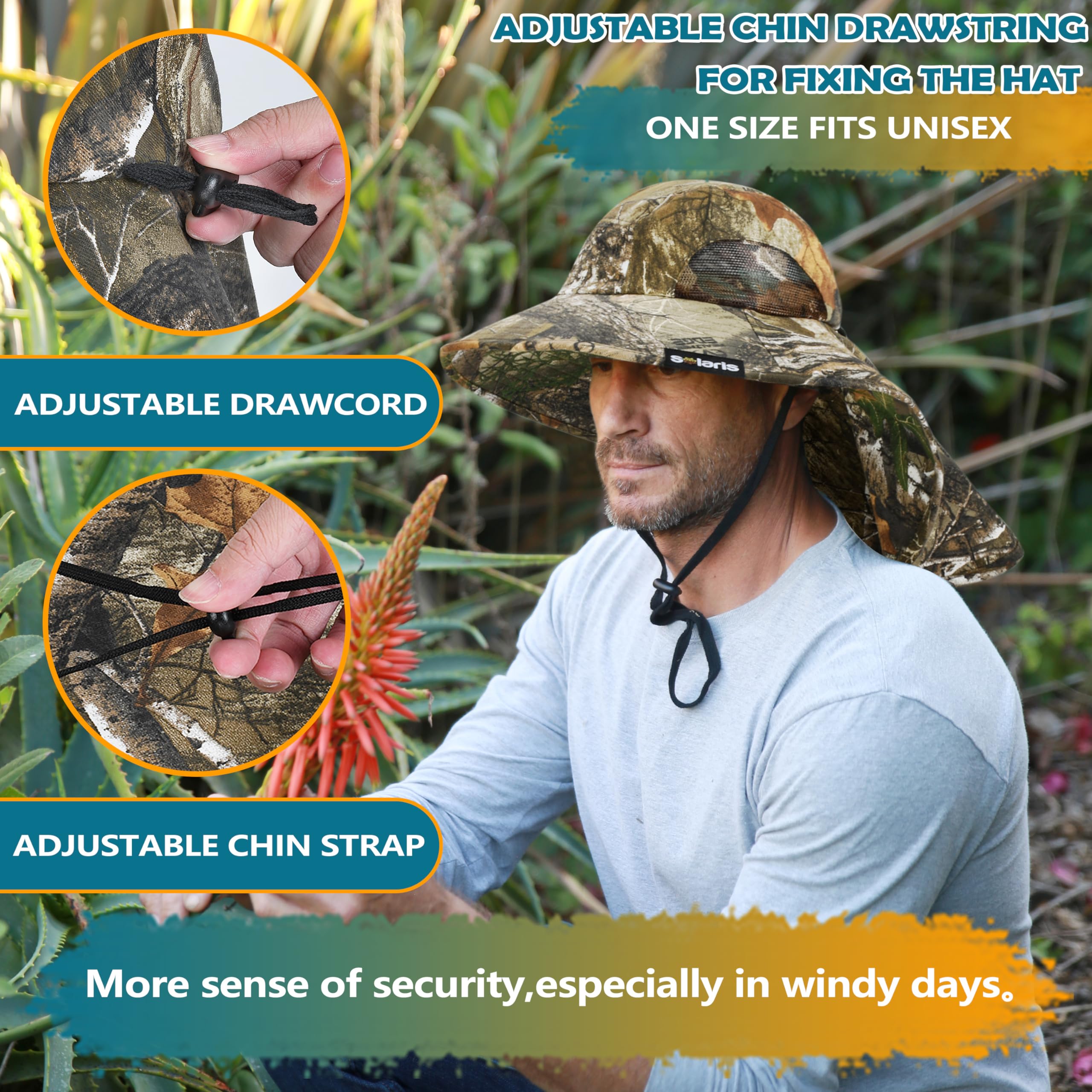 - UNIQUE JUNGLE CAMO: Wearing this hunting hat that resembles the woods, is like becoming one with nature when doing outdoor activities such as hiking and safaring, hiding your head and figure in the jungle, not easily frightening wild animals, and it is a good choice for hunting and sun protection.